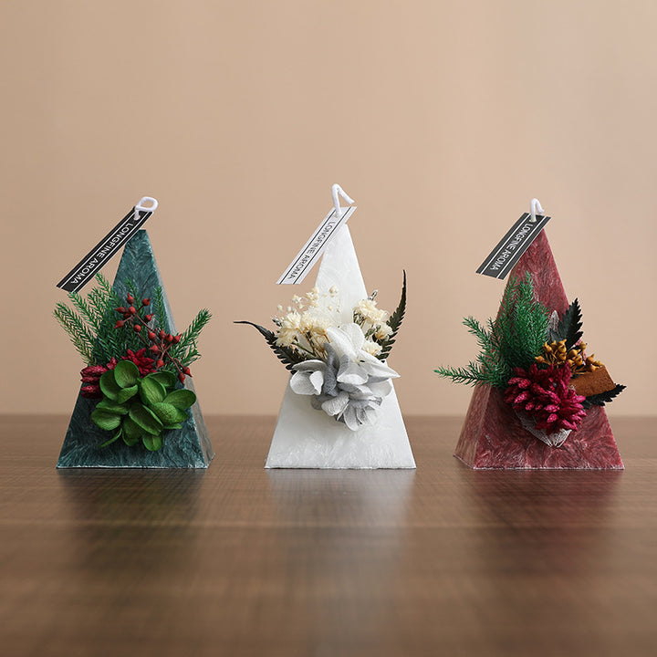 Bring elegance and warmth to your holiday décor with the Modylife Floral Cone Christmas Candle, a perfect blend of modern minimalism and festive charm. Each candle is handcrafted in a pyramid shape, decorated with preserved flowers and delicate details, creating a timeless piece that’s both stylish and meaningful.